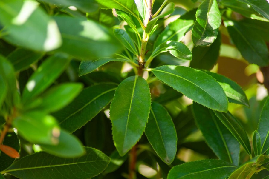 • De bladeren zijn groen en blijven het hele jaar door aan de boom.