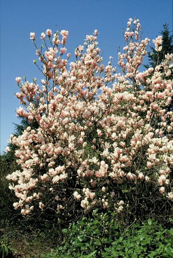 De Magnolia soulangeana, ook wel bekend als de Beverboom, staat bekend om zijn prachtige bloemen die in het vroege voorjaar verschijnen. Deze heester heeft een opgaande tot bossige groeiwijze en bloeit rijkelijk met roze en witte bloemen in maart en april. Een bijzonderheid van deze plant is dat hij onderhoudsarm is en goed gedijt op alle goed doorlatende grondsoorten in de zon.
