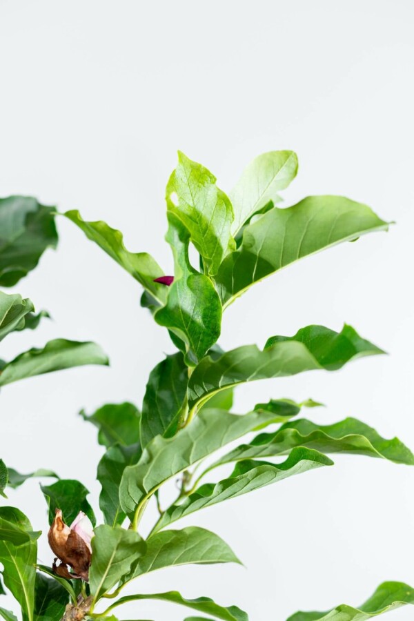 De Magnolia 'Susan', ook bekend als beverboom, is een elegante loofboom met een opvallende verschijning. Deze magnolia heeft een vaas-, ei- of bolvormige kroon die zich sierlijk uitstrekt. De gladde, grijze schors voegt een subtiel contrast toe aan het weelderige, groene bladerdek. In het voorjaar, wanneer de meeste bomen nog in rust zijn, tooit de Magnolia 'Susan' zich met een spectaculaire bloemenpracht. In april en mei verschijnen de paarse en rode bloemen, die de boom transformeren tot een ware blikvanger in elke tuin of park. Met een volwassen hoogte van 3 tot 5 meter en een breedte van 2,5 tot 4 meter is deze magnolia een perfecte keuze voor zowel kleine als grote tuinen. De trage groei en het compacte formaat maken hem ook geschikt voor gebruik als solitaire boom of in groepen. De Magnolia 'Susan' is een veelzijdige en charmante boom die seizoensgebonden interesse biedt met zijn prachtige bloemen, aantrekkelijke vorm en glanzende bladeren.