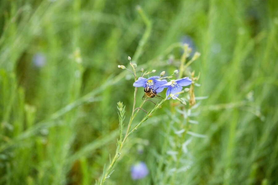 - Linum perenne bloeit van mei tot en met juli met prachtige blauwe bloemen die bijen en vlinders aantrekken.