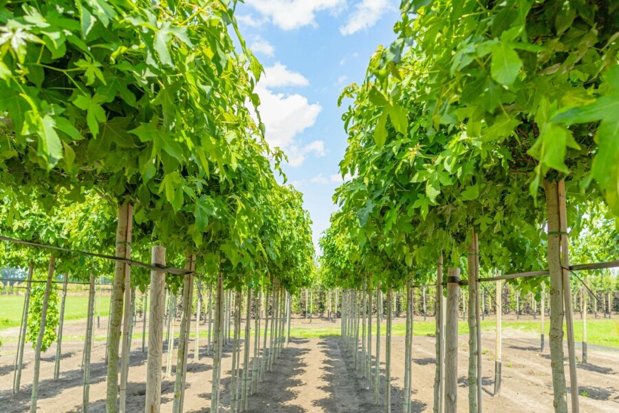 Ideale plaatsing van een Liquidambar styraciflua 'Gum Ball' bolvorm 60cm stam (Bolamberboom)
