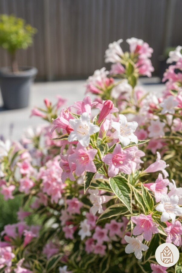 Toepassing van de Weigela florida 'Variegata' in de tuin