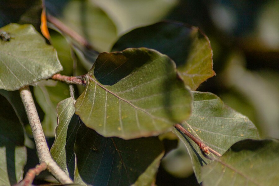 - Het blad van de bruine treurbeuk is paars tot rood gekleurd en verandert in de herfst naar goudtinten.