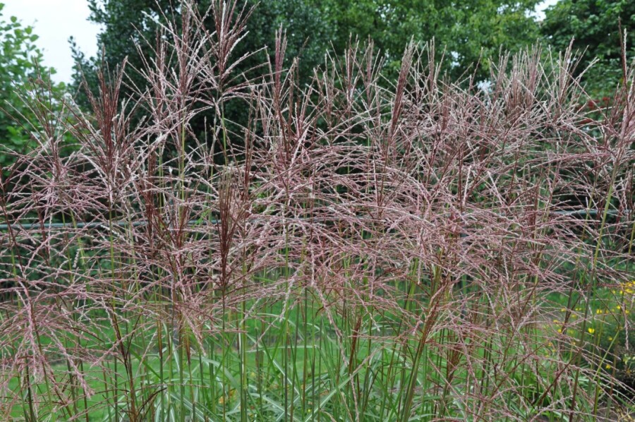 De Miscanthus sinensis 'Ferner Osten' bloeit van augustus tot en met oktober.