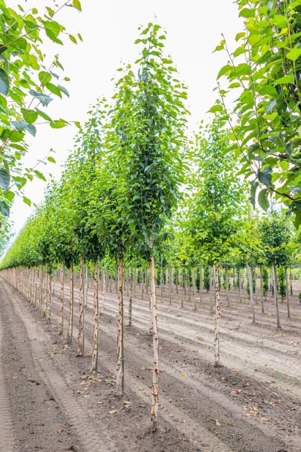 Bij het planten van een Betula utilis 'Fascination' (Himalaya-berk) is het belangrijk om een ruim plantgat te graven, minstens twee keer zo breed als de kluit of pot. Plant de boom iets hoger dan het maaiveld om te voorkomen dat de wortels in stilstaand water komen te staan. De beste planttijd is in het voorjaar of najaar, zodat de wortels zich kunnen vestigen voordat de zomerhitte of winterkou toeslaat. Geef de pas geplante boom regelmatig water tijdens het eerste groeiseizoen om de wortelgroei te stimuleren. Bedek de bodem rond de stam met een laag mulch om vocht vast te houden en onkruidgroei te onderdrukken. De Himalaya-berk is geschikt voor grote tuinen, parken, openbaar groen, begraafplaatsen en (dak)terrassen.