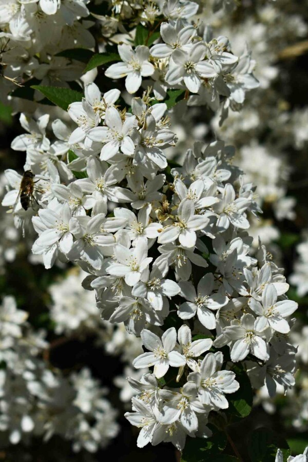 - Deutzia gracilis 'Nikko' bloeit in mei met prachtige witte bloemen die aantrekkelijk zijn voor bijen en vlinders.