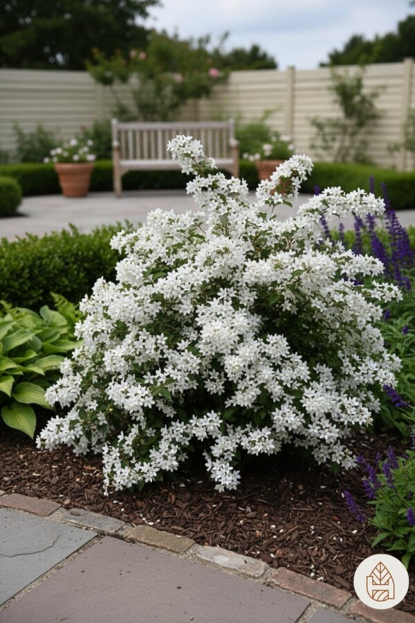 • Deutzia gracilis 'Nikko' bloeit in mei met prachtige witte bloemen die aantrekkelijk zijn voor bijen en vlinders.