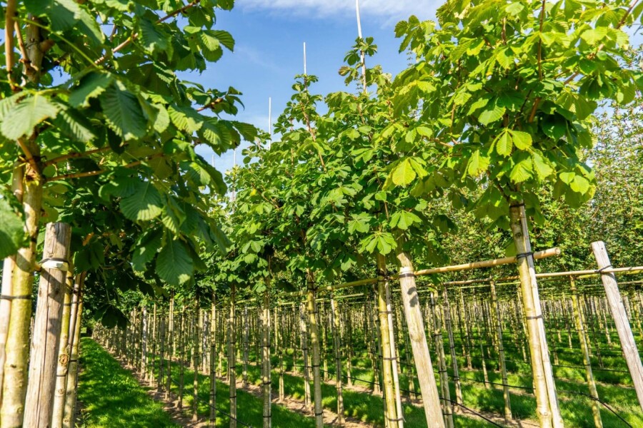 Ideale plaatsing van een Aesculus hippocastanum 'Baumannii' hoogstam 10/12 (Dubbelbloemige paardenkastanje)