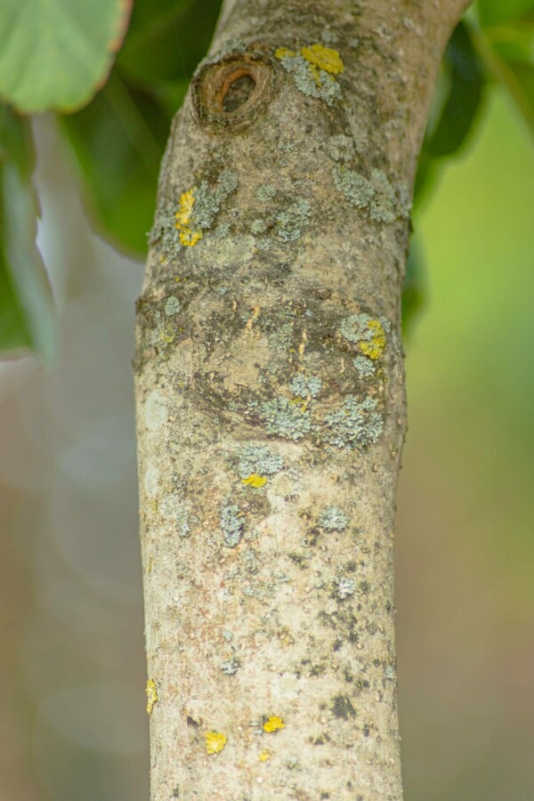 De Fraxinus excelsior 'Nana' heeft een grijze, bruine, gladde schors.