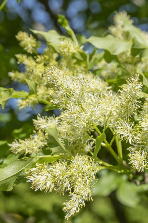 De bloeitijd van de Fraxinus ornus 'Obelisk' is in mei en juni.