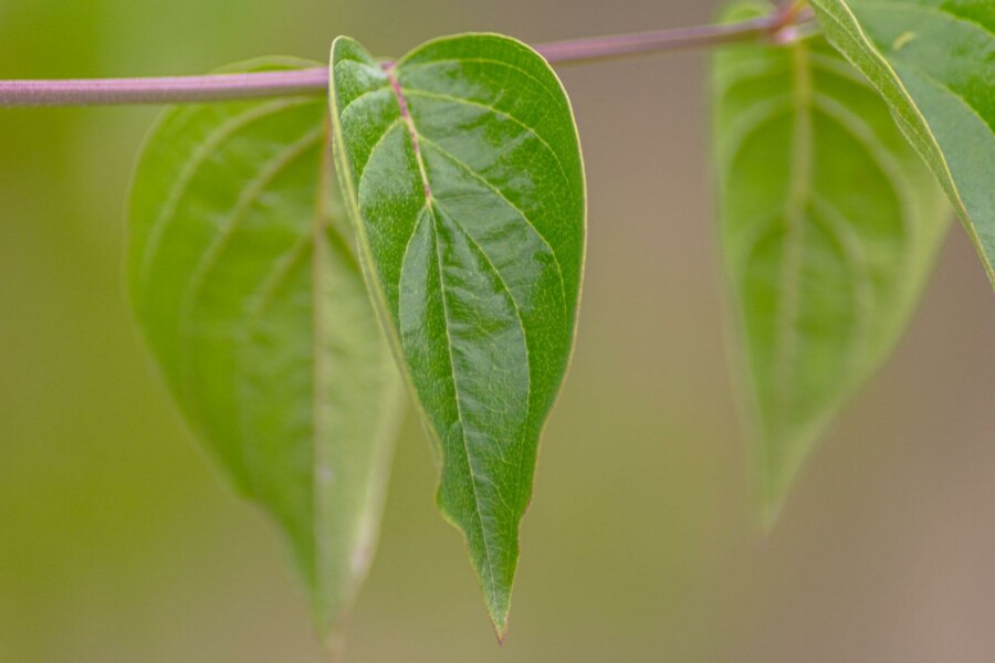 - Het blad is frisgroen en verkleurt in de herfst naar paars voordat het afvalt.