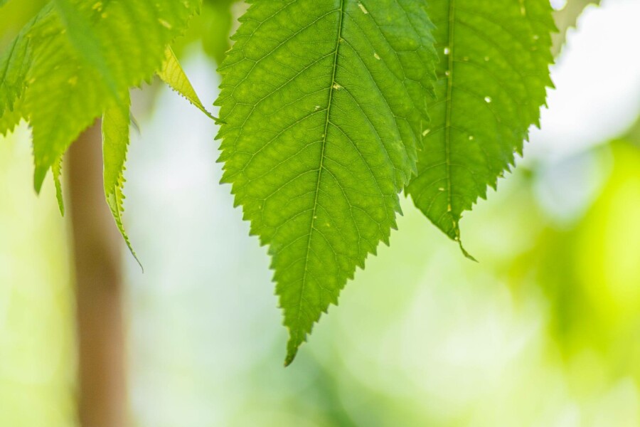 - De groene bladeren van de sierkers hebben bronzen uitlopers, wat zorgt voor een subtiel kleurcontrast gedurende het groeiseizoen.