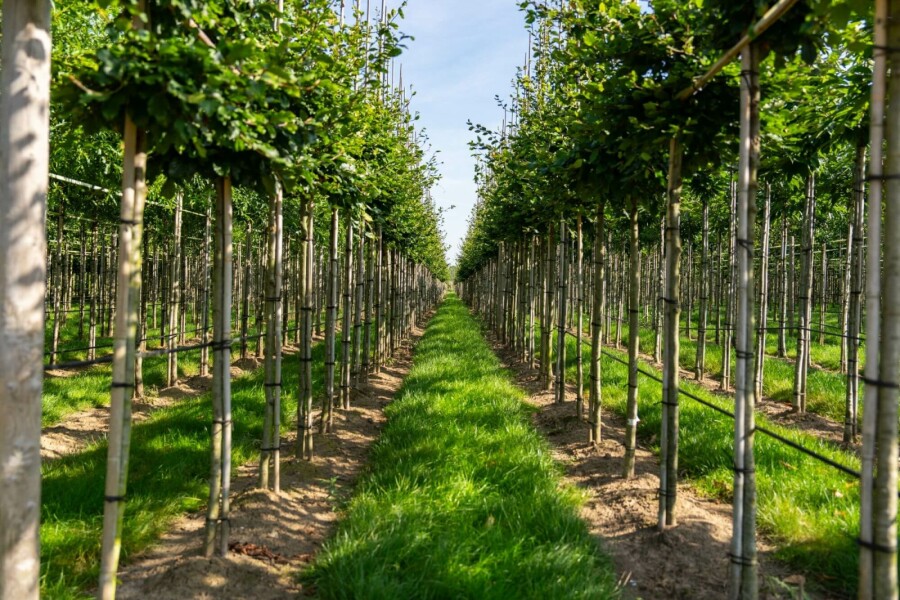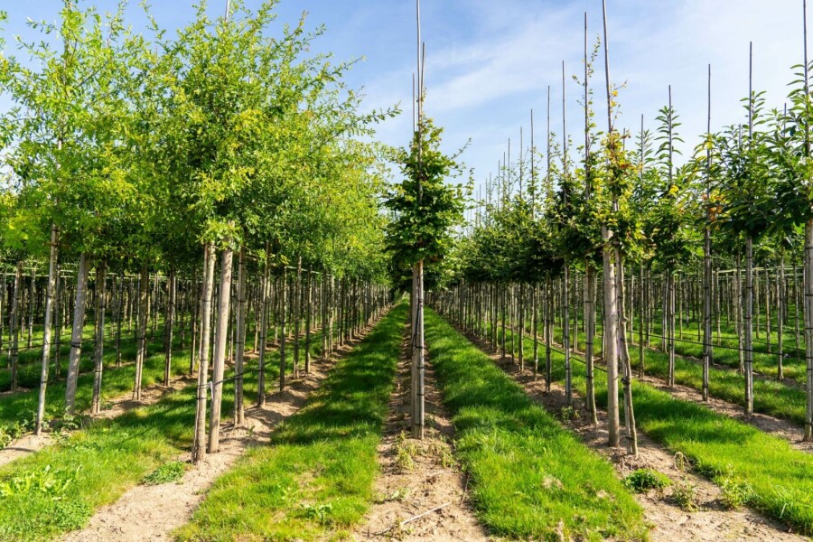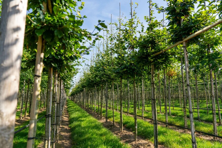 - Kies een standplaats met voldoende ruimte voor de boom om zijn volledige omvang te bereiken, rekening houdend met de brede kroon en de uiteindelijke hoogte.