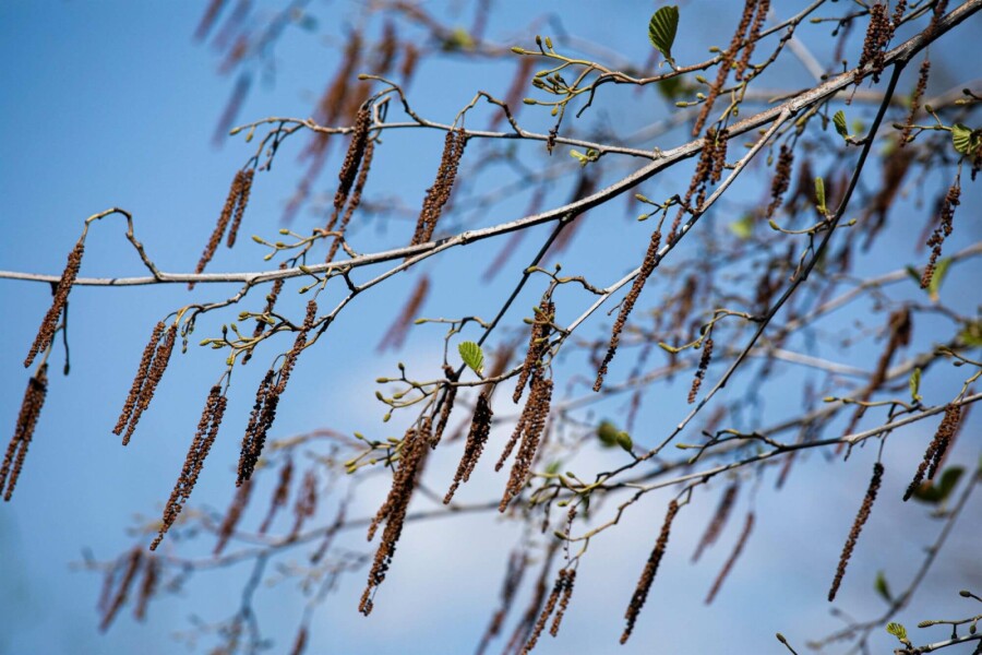 De Alnus glutinosa bloeit in februari en maart.