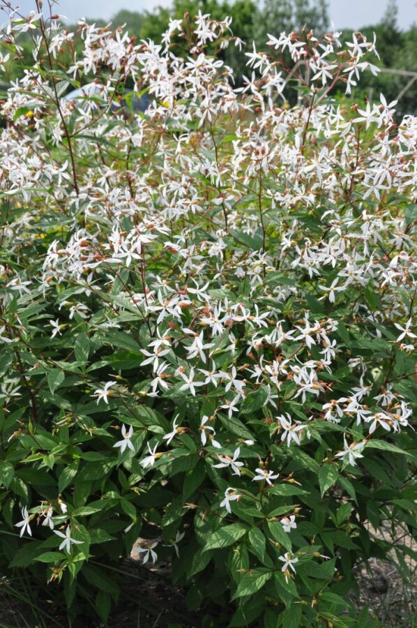 • Deze bijzondere plant is geliefd vanwege zijn sierlijke, luchtige groeiwijze en overvloedige bloei. De bloemen verschijnen aan dunne, vertakte stengels die zorgen voor een elegante uitstraling in uw tuin.