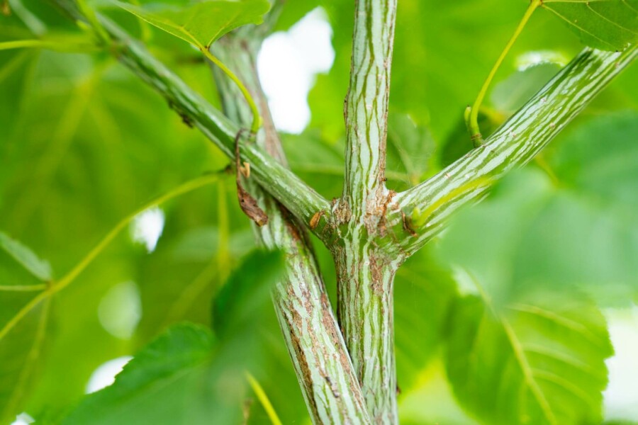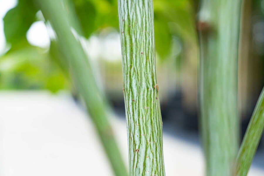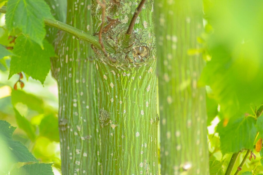 De Acer rufinerve heeft een witte, groene, gegroefd en gestreepte schors.