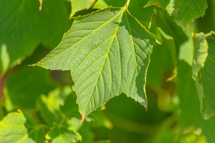 Is de Acer rufinerve meerstammig 200-250 bladhoudend?