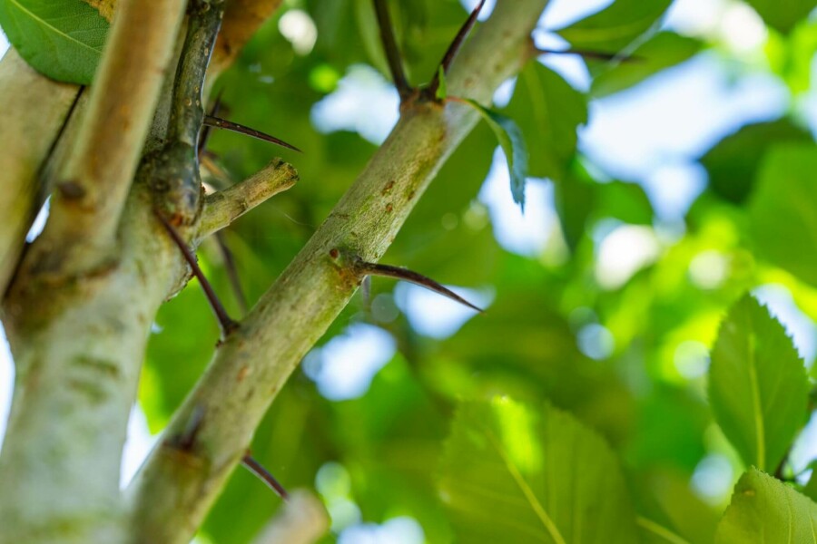 - De Crataegus crus-galli heeft een kenmerkende afgeplat bolvormige kroonvorm.