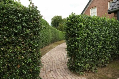 - Wintergroen: Deze haag behoudt zijn groene bladeren het hele jaar door, wat zorgt voor een blijvend groene uitstraling.