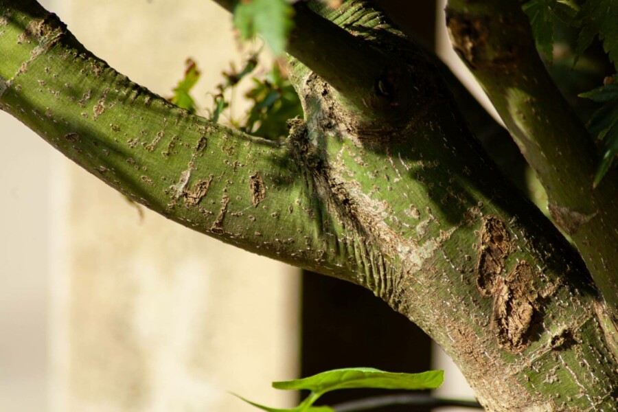 • De schors van de Japanse esdoorn is glad en varieert in kleur van bruin tot grijs.
