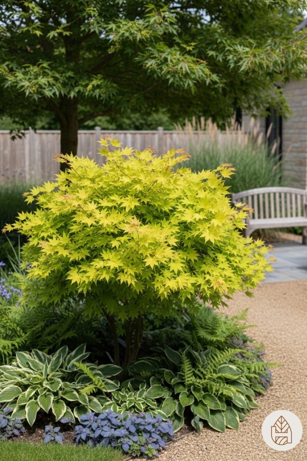 Toepassing van de Acer shirasawanum 'Jordan' in de tuin