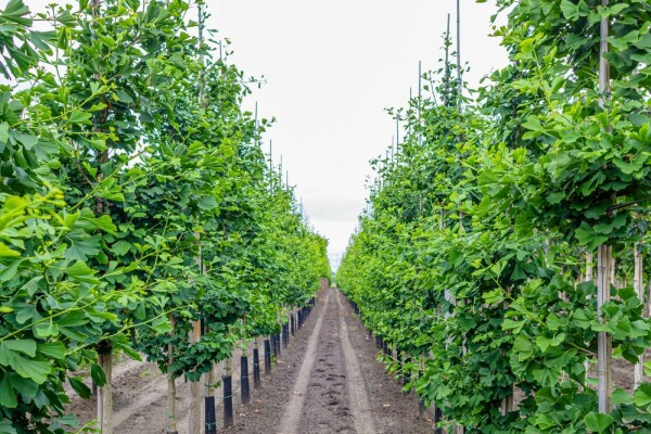 De Ginkgo biloba wordt 4 tot 8 meter breed.