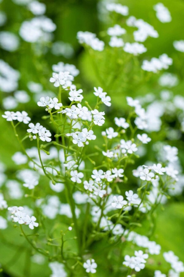 Het Kaukasisch vergeet-mij-nietje, ook wel bekend als Brunnera macrophylla 'Betty Bowring', is een prachtige toevoeging aan elke tuin. Deze vaste plant bloeit van april tot juni met schitterende witte bloemen en heeft een polvormende groeiwijze. Het grijs-groene blad is een lust voor het oog. Ideaal voor schaduwrijke plekken en perfect voor borders of groepsbeplanting. Ontdek deze schoonheid bij Heijnen!