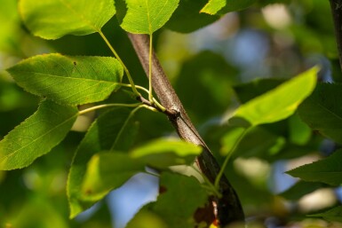 De Amelanchier arborea 'Robin Hill' (krentenboom) heeft weinig snoeiwerk nodig en kan over het algemeen met rust gelaten worden. Snoei alleen indien nodig om dode, beschadigde of kruisende takken te verwijderen voor een goede boomgezondheid en -structuur. De beste tijd om te snoeien is in de late winter of het vroege voorjaar voordat de nieuwe groei begint. Gebruik altijd schoon en scherp snoeigereedschap om schone sneden te maken en beschadiging van de bast te voorkomen. Vermijd drastisch snoeien, omdat dit een overmatige vegetatieve groei kan stimuleren ten koste van bloemen en vruchten. Met minimale snoei zal uw krentenboom een mooie natuurlijke vorm behouden.