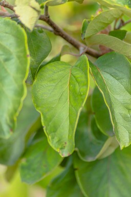 De Cydonia oblonga 'Vranja' profiteert van jaarlijkse bemesting om een gezonde groei en fruitproductie te ondersteunen. Bemest vroeg in het voorjaar, voordat de nieuwe groei begint, met een uitgebalanceerde, langzaam vrijkomende meststof speciaal voor fruitbomen. Verdeel de meststof gelijkmatig rond de boomschijf, vermijd contact met de stam. Organische opties zoals goed verteerde mest of compost kunnen ook gebruikt worden om voedingsstoffen te leveren. Pas op voor overmatige bemesting, aangezien dit kan leiden tot buitensporige vegetatieve groei ten koste van de fruitproductie. Aanvullende bemesting kan nodig zijn als de boom tekenen van voedingstekorten vertoont, zoals vergelende bladeren. Met de juiste bemesting zal uw kweepeer optimaal groeien en rijkelijk vrucht dragen.