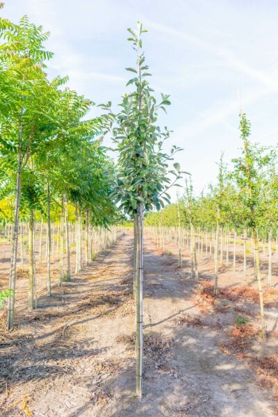 De Sorbus aria, ook bekend als meelbes, is een aantrekkelijke sierboom met sierwaarde in alle seizoenen. De zilverachtige onderkant van de bladeren creëert een schitterend effect in de bries. Witte voorjaarsbloemen worden gevolgd door rode vruchten in de herfst, die voedsel bieden voor vogels. De vruchten zijn ook eetbaar en kunnen worden gebruikt om jam en gelei te maken. De meelbes is een uitstekende keuze voor kleinere tuinen of als solitaire boom vanwege zijn middelmatige grootte en ovale tot kegelvormige kroon. De winterhardheid en het aanpassingsvermogen aan verschillende grondsoorten maken deze boom tot een onderhoudsvriendelijke keuze. Met zijn matige groeisnelheid bereikt de Sorbus aria een volwassen hoogte van 12-15 meter, waardoor hij geschikt is voor verschillende toepassingen, waaronder lanen, parken en straatbeplanting.