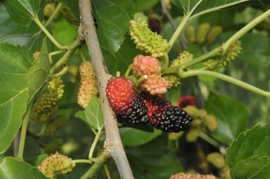 De Morus nigra is de ideale keuze voor uw tuin dankzij zijn veelzijdigheid en lage onderhoudsvereisten. U kunt genieten van de smaakvolle zwarte bessen, de fraaie bolvormige kroon en de opvallende herfstkleur, terwijl deze winterharde boom jarenlang slechts minimale verzorging nodig heeft. Met de Morus nigra brengt u een vleugje natuur in uw buitenruimte dat zowel praktisch als esthetisch is.