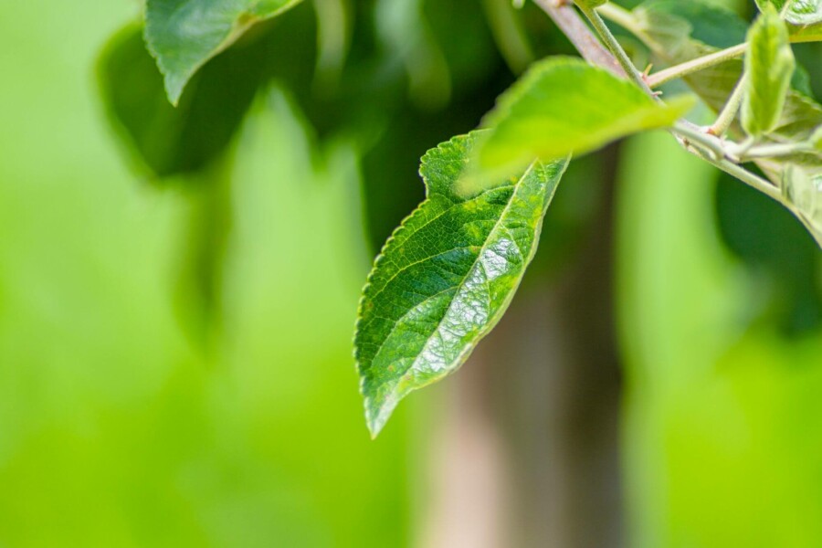 - De bladeren van de Malus domestica 'Elstar' zijn groen en blijven dit gedurende het hele groeiseizoen.