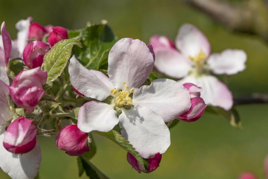 De Malus domestica 'Elstar', ook wel bekend als de Elstar appelboom, is een prachtige fruitboom met een afgeplat bolvormige kroon. De boom heeft een bruine, gegroefde schors en groene bladeren die gedurende het hele groeiseizoen hun kleur behouden. In april en mei siert de Elstar appelboom zich met charmante witte en roze bloemen, die niet alleen een lust voor het oog zijn, maar ook een belangrijke nectarbron vormen voor bestuivers. In de herfst transformeert de boom in een waar kleurenspektakel, wanneer de appels rijpen en schitteren in tinten groen, rood en geel. Met een volwassen hoogte van 6 tot 8 meter en een breedte van 4 tot 8 meter, is de Malus domestica 'Elstar' een middelgrote boom die perfect past in zowel grote als kleine tuinen. De boom is winterhard en windbestendig, waardoor hij geschikt is voor het Nederlandse klimaat. Dankzij zijn veelzijdige toepassingsmogelijkheden, zoals in parken, groenstroken, potten en plantenbakken, is de Elstar appelboom een geliefde keuze onder tuinliefhebbers en fruittelers.
