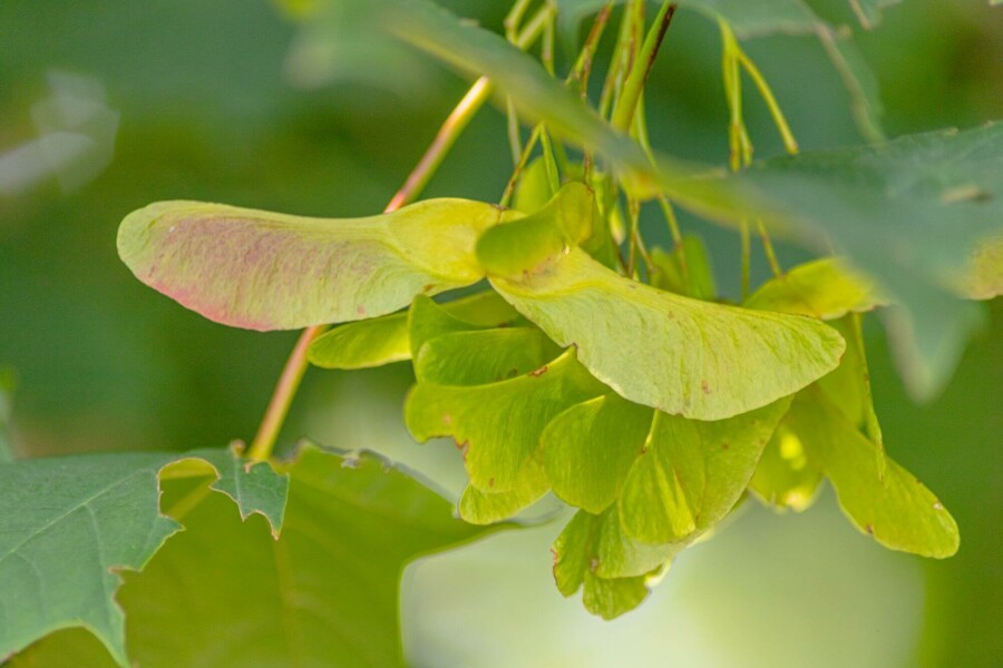 - De Acer platanoides bloeit in april met kleine, geelgroene bloemen.