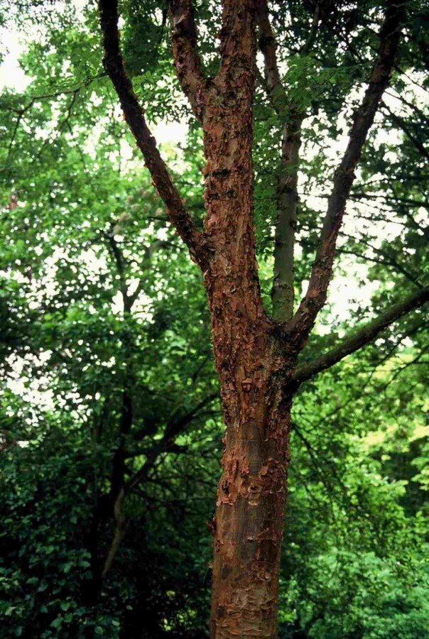 • De bast van Acer griseum is opvallend met zijn schilferende, papieren textuur en heeft een roodbruine kleur. De takken zijn doornloos.