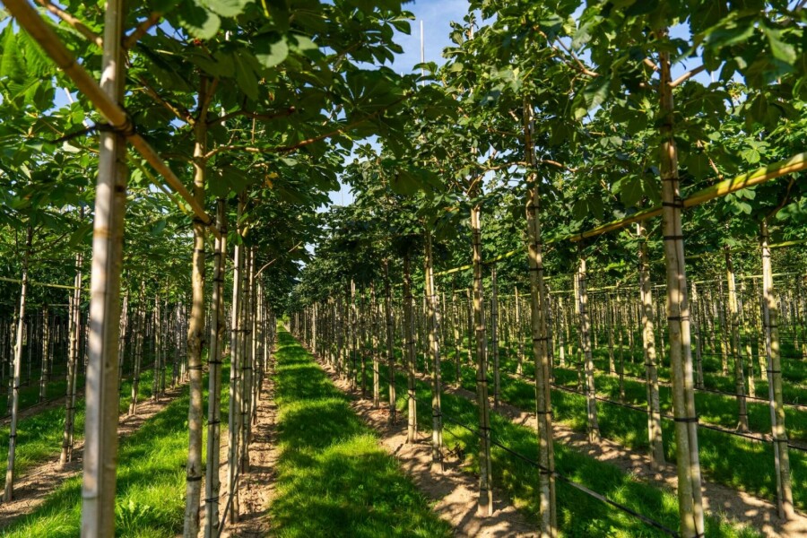 Ideale plaatsing van een Aesculus x carnea 'Briotii' hoogstam 10/12 (Rode paardenkastanje)