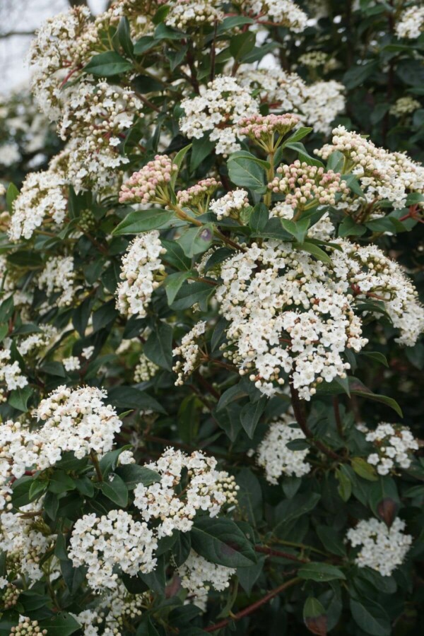 Overweeg om de Viburnum tinus te kopen voor een onderhoudsarme en groenblijvende toevoeging aan de tuin.