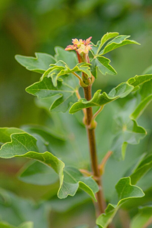 - De veldesdoorn bloeit in april en mei met kleine, geelgroene bloemen.