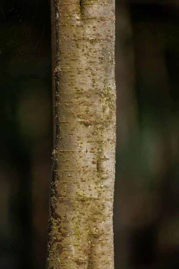 • De boom heeft een zwarte, gegroefde schors en groene bladeren.