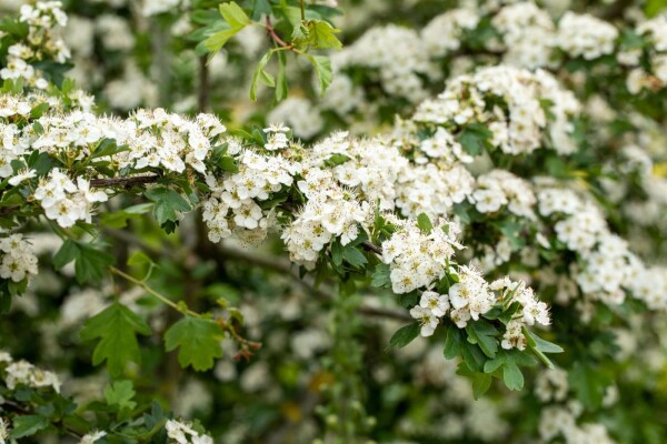 De gewone meidoorn (Crataegus laevigata) is een veelzijdige boom die geschikt is voor diverse toepassingen, waaronder straatbomen, laanbomen, grote en kleine tuinen, parken en plantsoenen. Met zijn matige groeikracht ontwikkelt de boom zich gestaag en beheersbaar over de tijd. De Crataegus laevigata produceert vruchten die als voedselbron voor dieren kunnen dienen en in de herfst een sierwaarde hebben. De aantrekkelijke ovale tot ronde, bolvormige kroonvorm en de seizoensgebonden veranderingen in bladkleur dragen bij aan de esthetische aantrekkingskracht van de boom gedurende het hele jaar. In de lente voegt de bloei van de gewone meidoorn, met zijn witte, crèmekleurige of roze bloemen, een prachtige toevoeging toe aan tuinen en parken. Als bladverliezende boom kleurt het groene blad in de herfst goudgeel, wat een extra dimensie geeft aan het landschap.