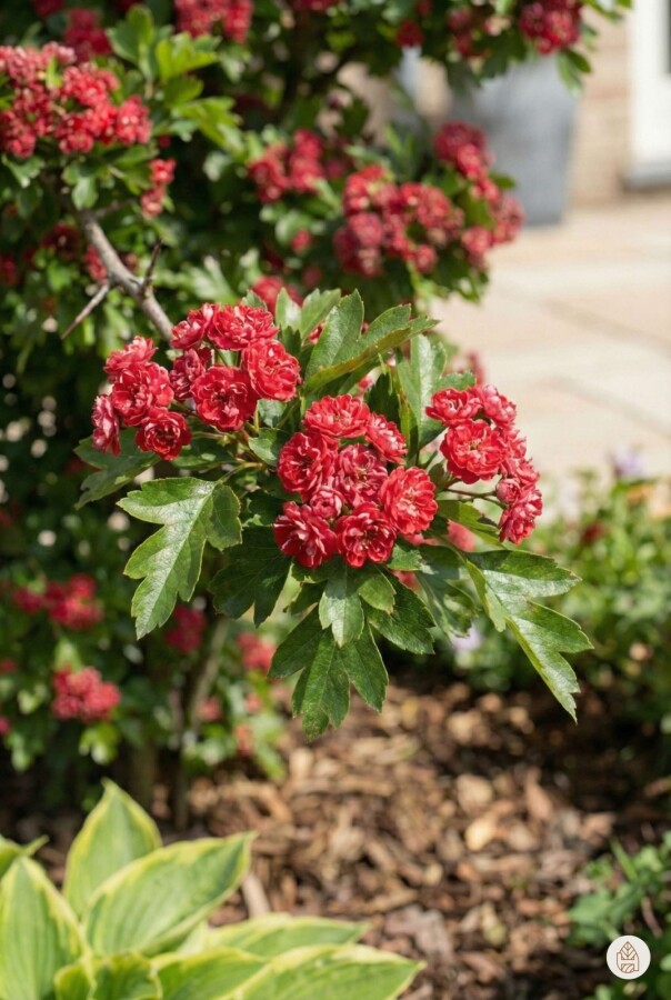 Ideale plaatsing van een Crataegus laevigata 'Paul's Scarlet' struik 150-175 cm (Tweestijlige meidoorn)