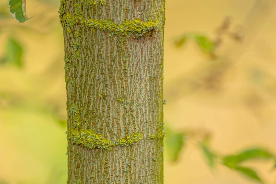De Acer negundo 'Flamingo' heeft een groene, grijze en gegroefd schors.
