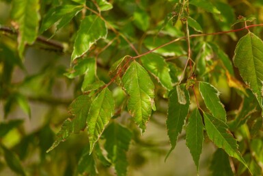 Pas geplante zilverbonte vederesdoorns hebben regelmatig water nodig totdat ze goed geworteld zijn, vooral tijdens droge periodes. Geef diep en minder frequent water om diepe wortelgroei te stimuleren. Eenmaal gevestigd is deze boom relatief droogtetolerant, maar zal hij toch baat hebben bij water geven tijdens langdurige droogte. Geef water aan de basis van de boom in de ochtend en vermijd het nat maken van het blad, omdat dit schimmelziekten kan bevorderen. Mulchen rond de stamvoet kan helpen om het bodemvocht vast te houden en de bodemtemperatuur te reguleren. Tekenen dat uw Acer water nodig heeft zijn verwelkende of vergelende bladeren, bladverbranding, of vroege herfstverkleuring en bladverlies. Let op deze signalen en geef water voordat de boom ernstige droogtestress ervaart. Met de juiste watergift zal uw zilverbonte vederesdoorn gezond en vitaal blijven.