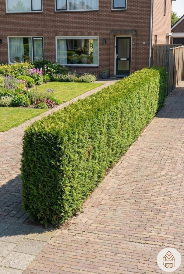 - Zichtdichte heg: Hoewel matig zichtdicht, biedt deze heg toch voldoende privacy.