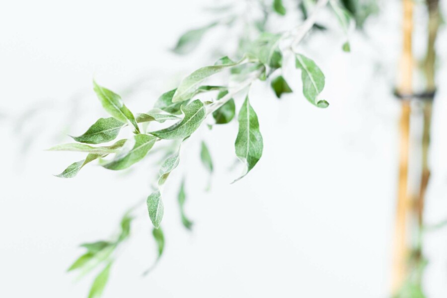 - Het blad van de wilgbladige treurpeer heeft een unieke grijsgroene kleur.
