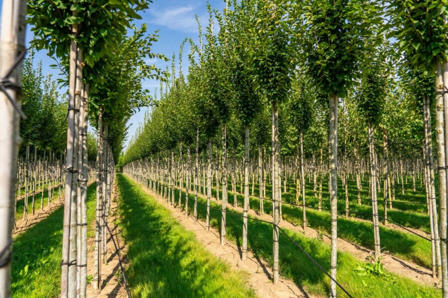 Ideale plaatsing van een Carpinus betulus 'Fastigiata' hoogstam 10/12 (Zuilvormige haagbeuk)