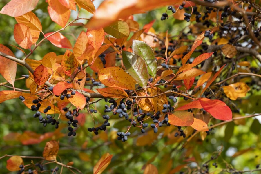 De Nyssa sylvatica, ook bekend als de zwarte tupeloboom, is een loofboom die door de seizoenen heen veel te bieden heeft. In het voorjaar verschijnen de bronskleurige uitlopers, die overgaan in frisgroen zomerblad. In de herfst tooit de boom zich in schitterende oranje, rode en gele herfstkleuren. Als nectarbron trekt de Nyssa sylvatica verschillende bestuivers aan, terwijl de vruchten op hun beurt vogels en andere dieren lokken. Met zijn goede winterhardheid en status als toekomstboom lijkt de zwarte tupeloboom goed bestand tegen veranderende klimaatomstandigheden. Dankzij de trage groei is deze boom ook geschikt voor kleinere tuinen, waar hij niet snel zijn standplaats zal ontgroeien. De Nyssa sylvatica is daarmee een veelzijdige keuze die jaar na jaar plezier biedt.