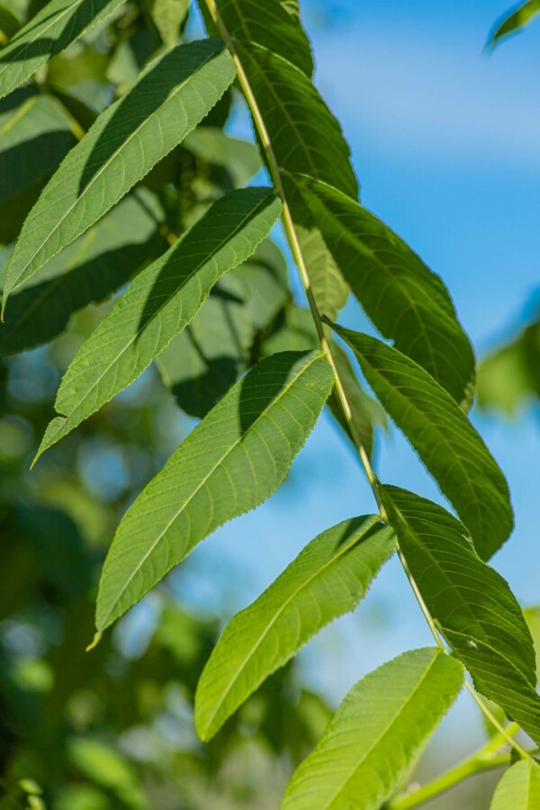 • De Juglans nigra is een bladverliezende loofboom met een piramidale tot ovale kroonvorm.